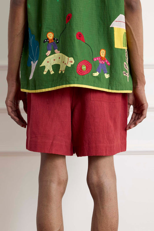 Red Cotton Shorts
